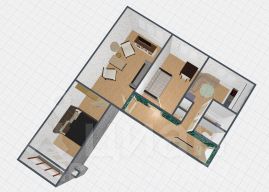 Жилая площадь — 39 м² (комнаты 11, 18, 10 кв.м.), кухня 7,5 м² с кладовой под подоконником. Раздельный санузел, отремонтированная ванна.