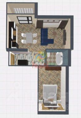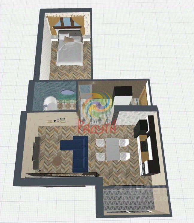 Удобная планировка с просторной кухней.