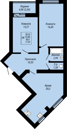 Продаётся 2-комнатная квартира в строящемся доме (1 очередь), срок сдачи: III-кв. 2026, общей площадью 71.54 кв.м., на 6 этаже. Новый жилой комплекс "Юбилейный" от застройщика ООО СЗ "Славянский Дом Бета" расположен в г. Иваново на ул. Куконковых.