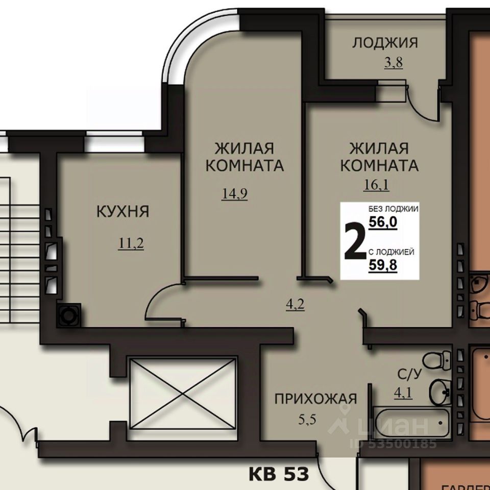 Общая площадь58,25 м²