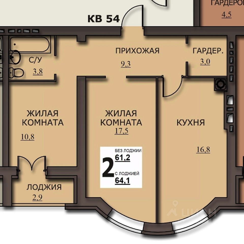 Общая площадь63,38 м²