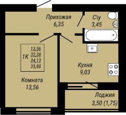 35,88 м²