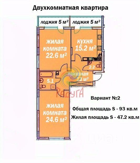 - 2 лоджии по 5 м