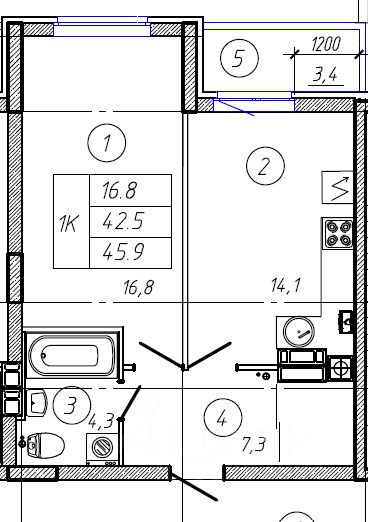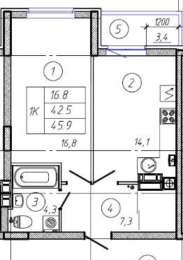 45,9 м²