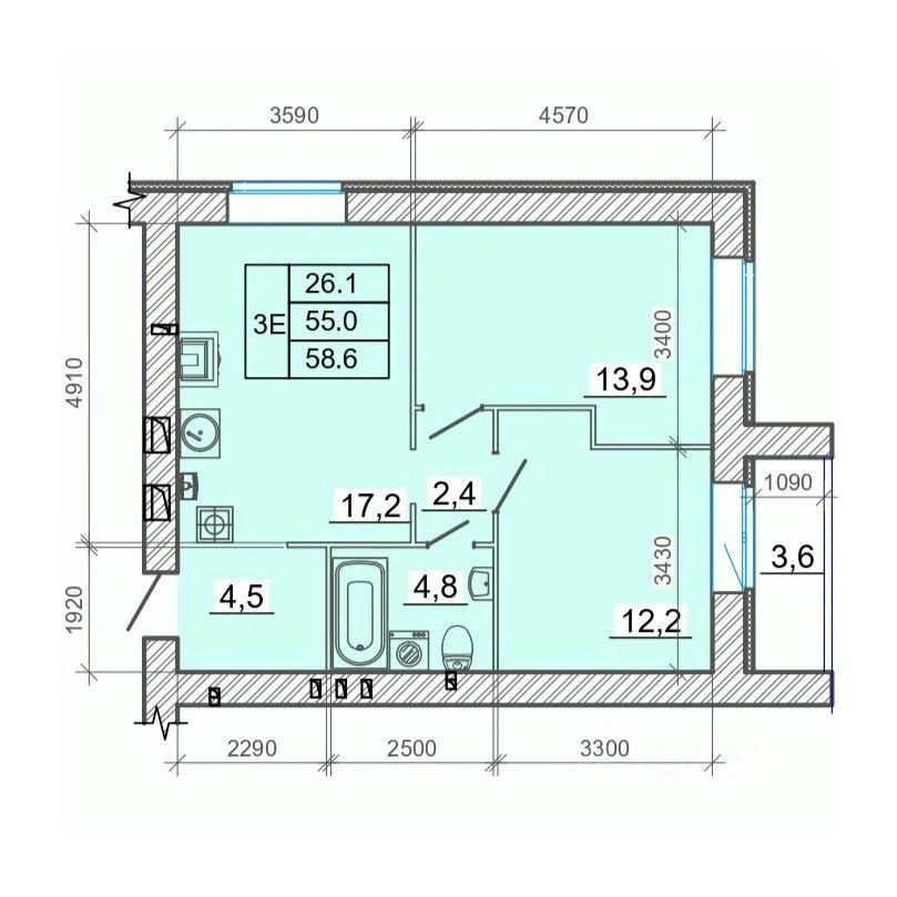 Общая площадь58,6 м²