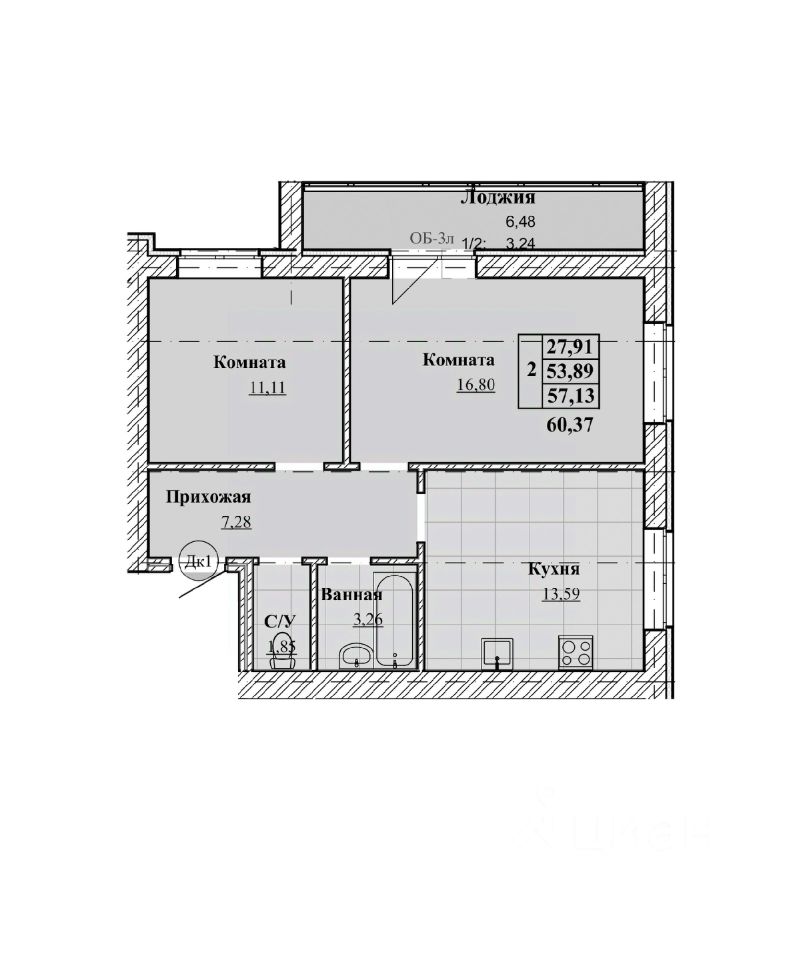 57,13 м²
