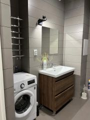В квартире установлены качественные шкафы и есть гардеробная, поэтому места для хранения вещей достаточно. Ванная комната совмещённая, оформлена в современном стиле с использованием качественных материалов.