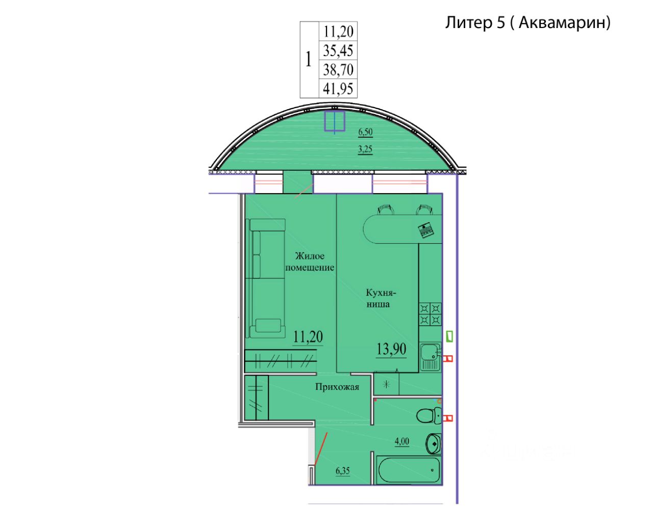 41,95 м²