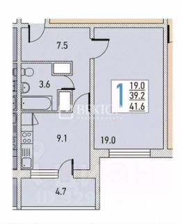 общая площадь - 39,6 м;