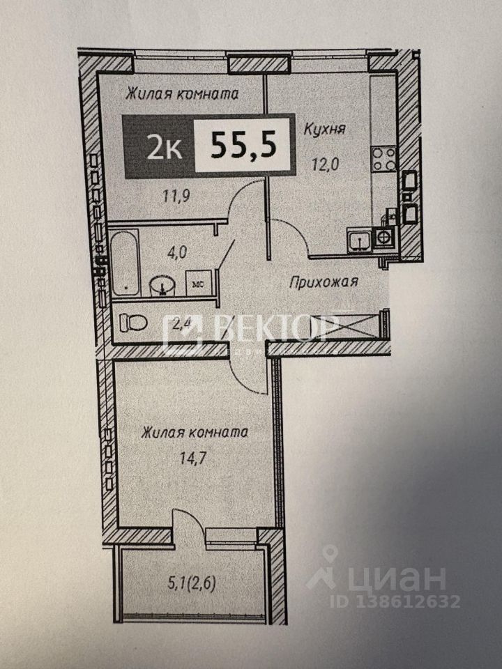 Общая площадь квартиры в 54.1 м (учет лоджии кооф. 0,5) продумана до мелочей: просторная жилая зона размером 26.6 м позволяет с легкостью обустроить две отдельные комфортные спальни или гостиную с кабинетом.