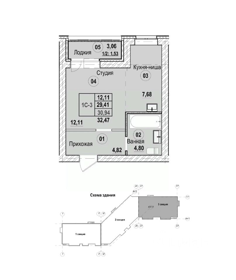 32,47 м²
