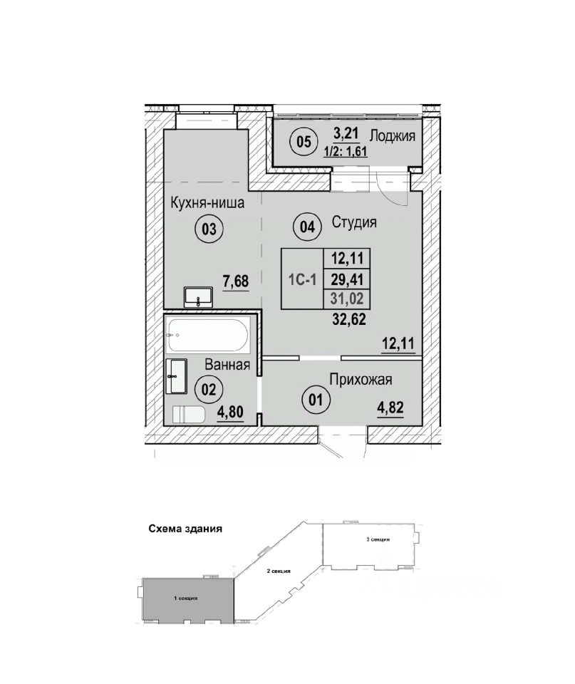32,62 м²