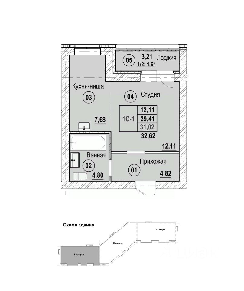 Продаётся студия в строящемся доме (Литер Б), срок сдачи: II-кв. 2028, общей площадью 32.62 кв.м., на 6 этаже. Новый жилой комплекс "Новая Дерябиха 4" от застройщика "ГК СМУ 1" расположен по адресу: Ивановский район, деревня Дерябиха.