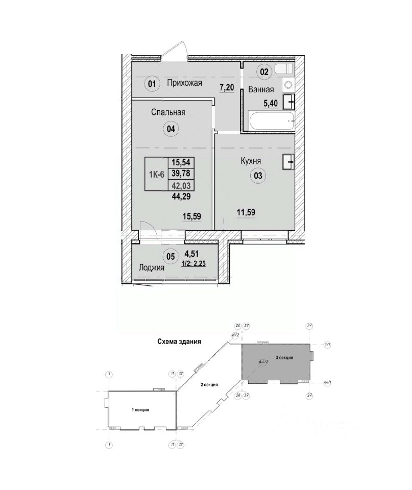 44,29 м²