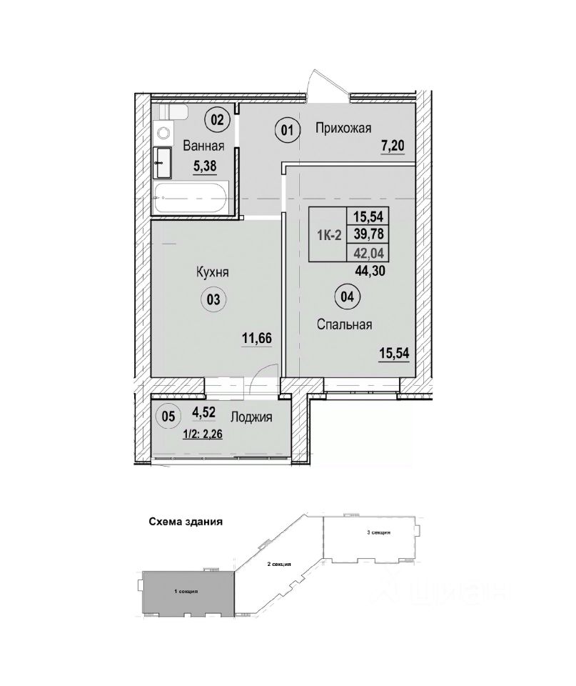 44,3 м²