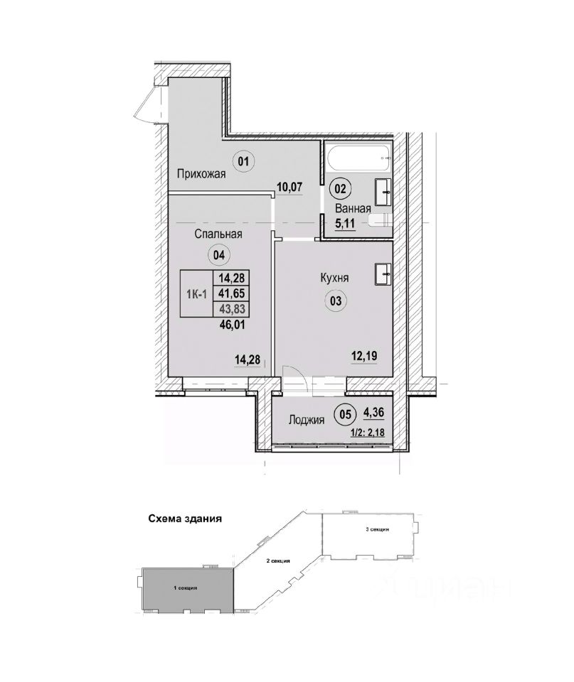 Продаётся 1-комнатная квартира в строящемся доме (Литер Б), срок сдачи: II-кв. 2028, общей площадью 46.01 кв.м., на 1 этаже. Новый жилой комплекс "Новая Дерябиха 4" от застройщика "ГК СМУ 1" расположен по адресу: Ивановский район, деревня Дерябиха.