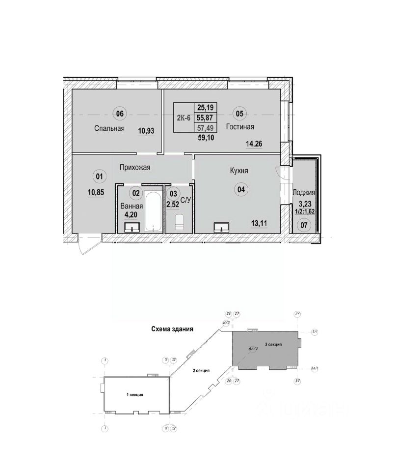 Продаётся 2-комнатная квартира в строящемся доме (Литер Б), срок сдачи: II-кв. 2028, общей площадью 59.1 кв.м., на 6 этаже. Новый жилой комплекс "Новая Дерябиха 4" от застройщика "ГК СМУ 1" расположен по адресу: Ивановский район, деревня Дерябиха.