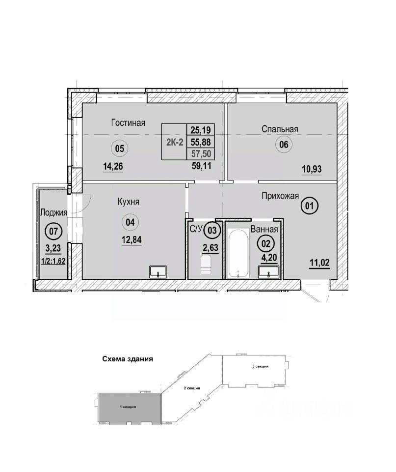 59,11 м²