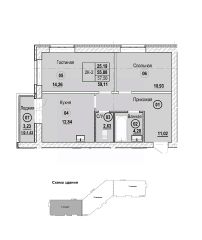 Продаётся 2-комнатная квартира в строящемся доме (Литер Б), срок сдачи: II-кв. 2028, общей площадью 59.11 кв.м., на 1 этаже. Новый жилой комплекс "Новая Дерябиха 4" от застройщика "ГК СМУ 1" расположен по адресу: Ивановский район, деревня Дерябиха.