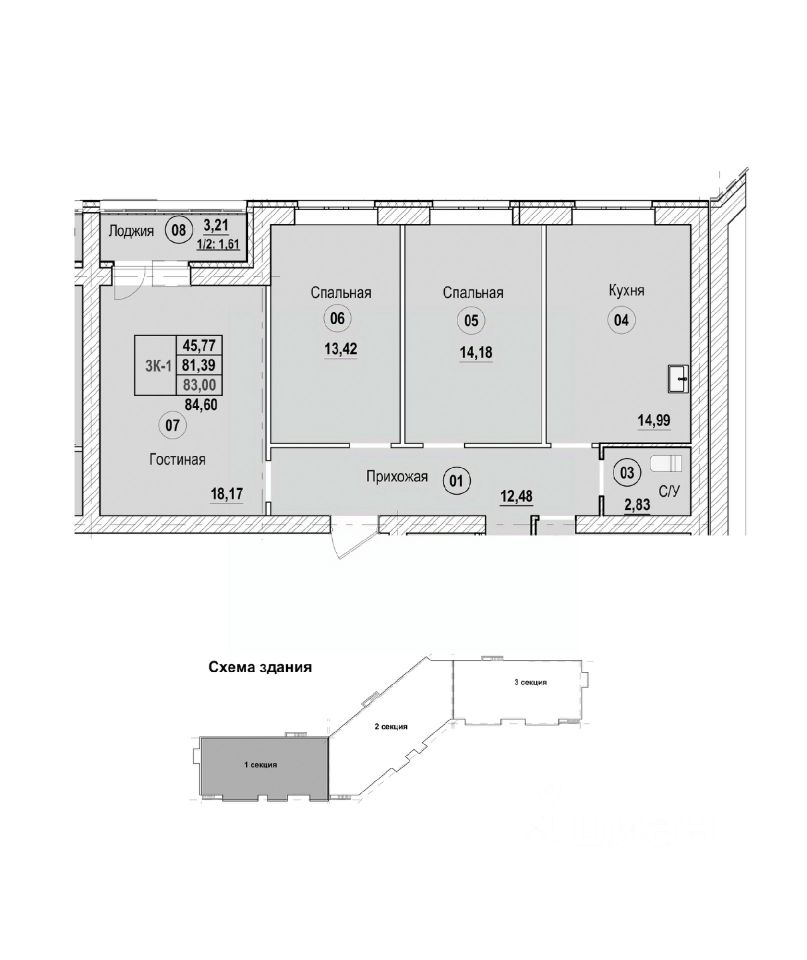 Продаётся 3-комнатная квартира в строящемся доме (Литер Б), срок сдачи: II-кв. 2028, общей площадью 84.6 кв.м., на 1 этаже. Новый жилой комплекс "Новая Дерябиха 4" от застройщика "ГК СМУ 1" расположен по адресу: Ивановский район, деревня Дерябиха.