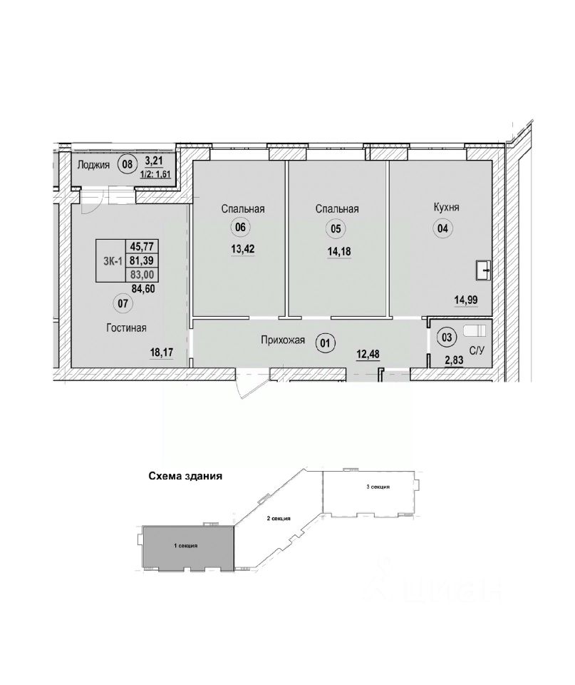 Продаётся 3-комнатная квартира в строящемся доме (Литер Б), срок сдачи: II-кв. 2028, общей площадью 84.6 кв.м., на 6 этаже. Новый жилой комплекс "Новая Дерябиха 4" от застройщика "ГК СМУ 1" расположен по адресу: Ивановский район, деревня Дерябиха.