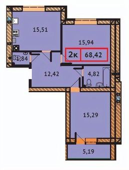 Продается 2-комн. квартира, 68,42 м²