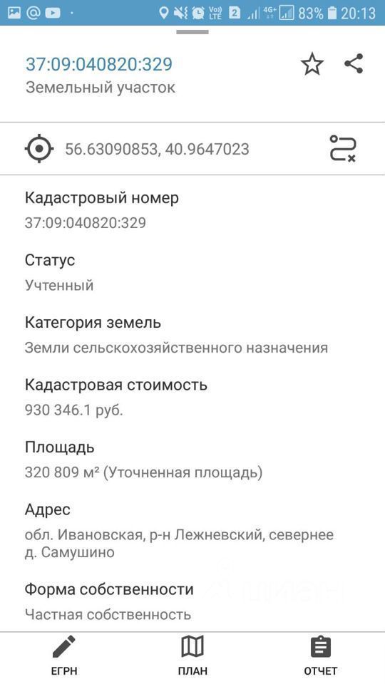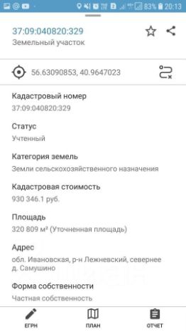 Кадастровый номер участка 37:09:040820:329.