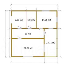-3 комнаты с площадями: 23 м2; 14 м2; 10 м2