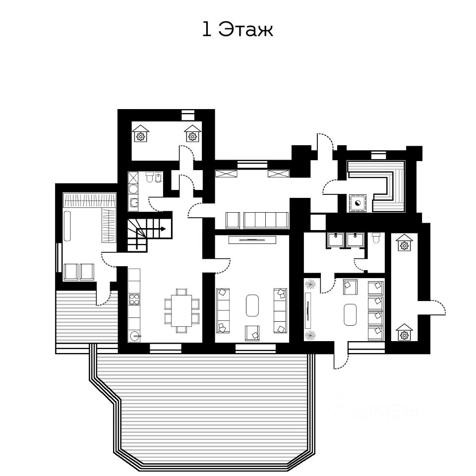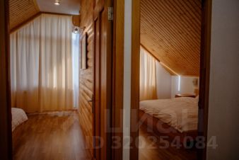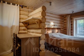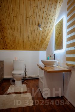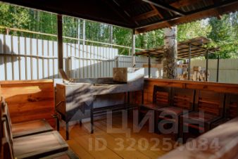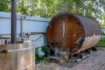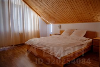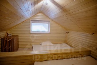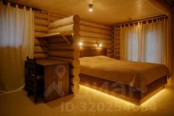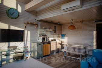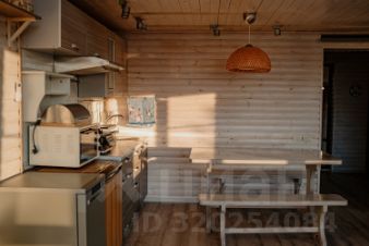 Внутри: большая кухня-столовая с выходом на веранду 30 м² (лиственница, мебель, маркиза), 1 просторная спальня, 2 санузла, лофт с двумя спальными местами.