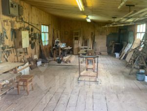 Есть действующая баня с кирпичной печкой, хлев для животных с курятником (требует ремонта, давно не используется), сарай для хранения садового инвентаря (с ямой) и сарай для хранения дров. Отдельным зданием оборудованная мастерская для столярных и слесарных работ.