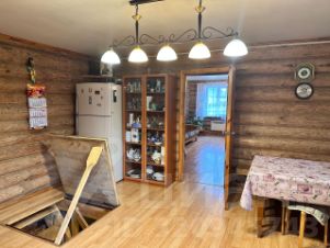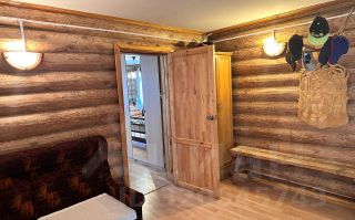 • ГОСТЕВОЙ БРЕВЕНЧАТЫЙ ДОМ, отделка выполнена блок-хаусом: площадь 144,34 м², полностью обустроенный. Планировка: кухня с русской печью; 3 спальни; прихожая, вместительный хозяйственный блок и гараж