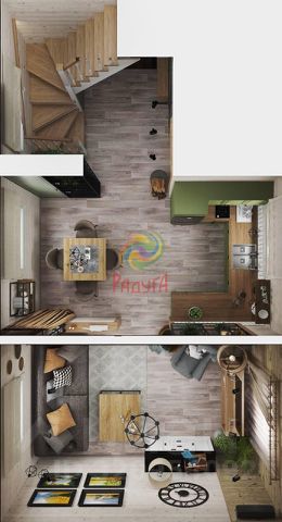 - 1-й этаж: просторная кухня-столовая, гостиная, санузел