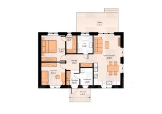1. Фундaмент - монолитная лента 400х600 мм с полами по грунту (монолитная плита 150 мм). С утеплением ЭППС толщиной 50 мм и устройством обмазочной гидроизоляции. Крыльцо и патио на винтовых сваях, деревянный каркас с отделкой шлифованной выкрашенной доской.