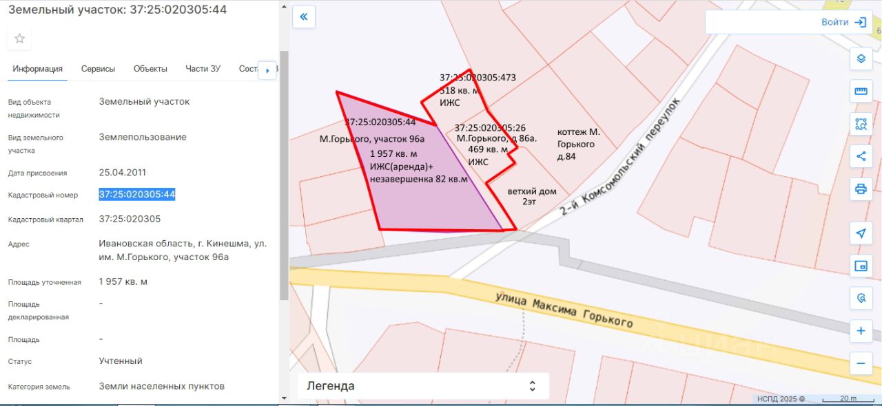Участок 29 соток с электричеством Горького 96а состоит из трех смежных земельных участков .Полностью подготовлен к строительству жилого или коммерческого объекта.