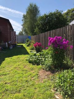 В огороде посажены кусты смородины, малины, крыжовник, яблоня, груша. Земля дает хороший урожай!