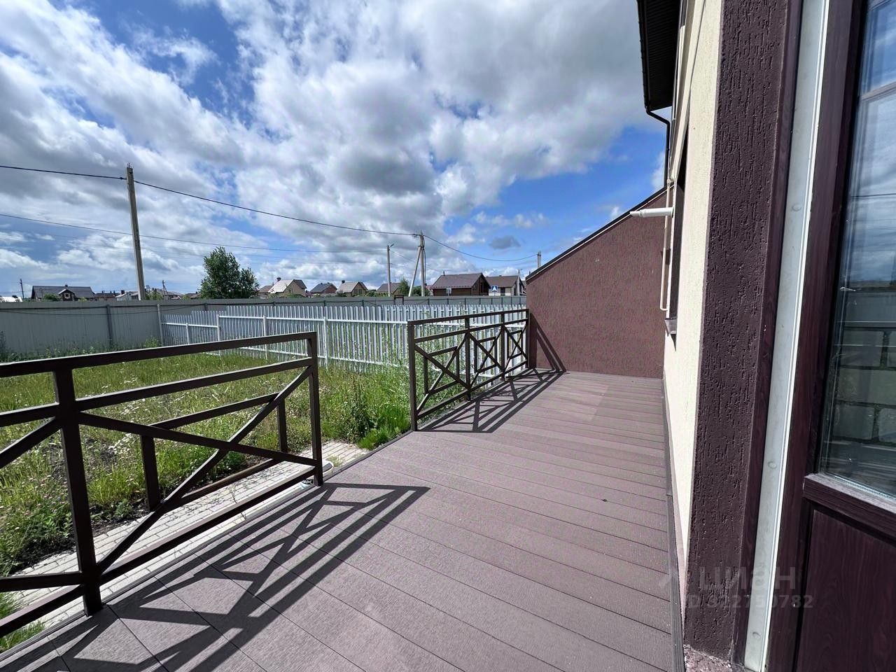 • На первом этаже: просторную кухню-гостиную с выходом на террасу. На участке, который огорожен забором можно обустроить мангальную зону, поставить качели, бассейн и многое другое. Две спальные комнаты, совмещенный санузел с душем, гардеробная, кабинет.