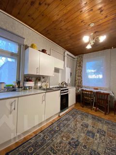 Бревенчатый сруб 12х9 м обшит сайдингом. Гостиная, три спальни, кухня, санузел со всеми удобствами, коридоры.