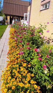 2 теплицы, грядки под овощи, участок под посадку картофеля, цветник.