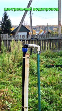 Водоснабжение центральное, заведено в дом, установлен слив для стоков воды из дома.