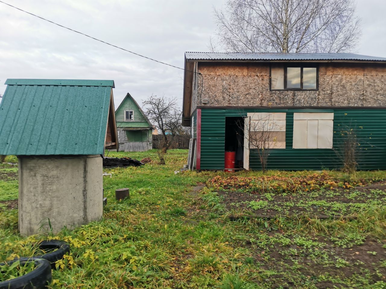 Нa участкe расположен 2-х этажный дом без внутренней отделки, электричество подключено.