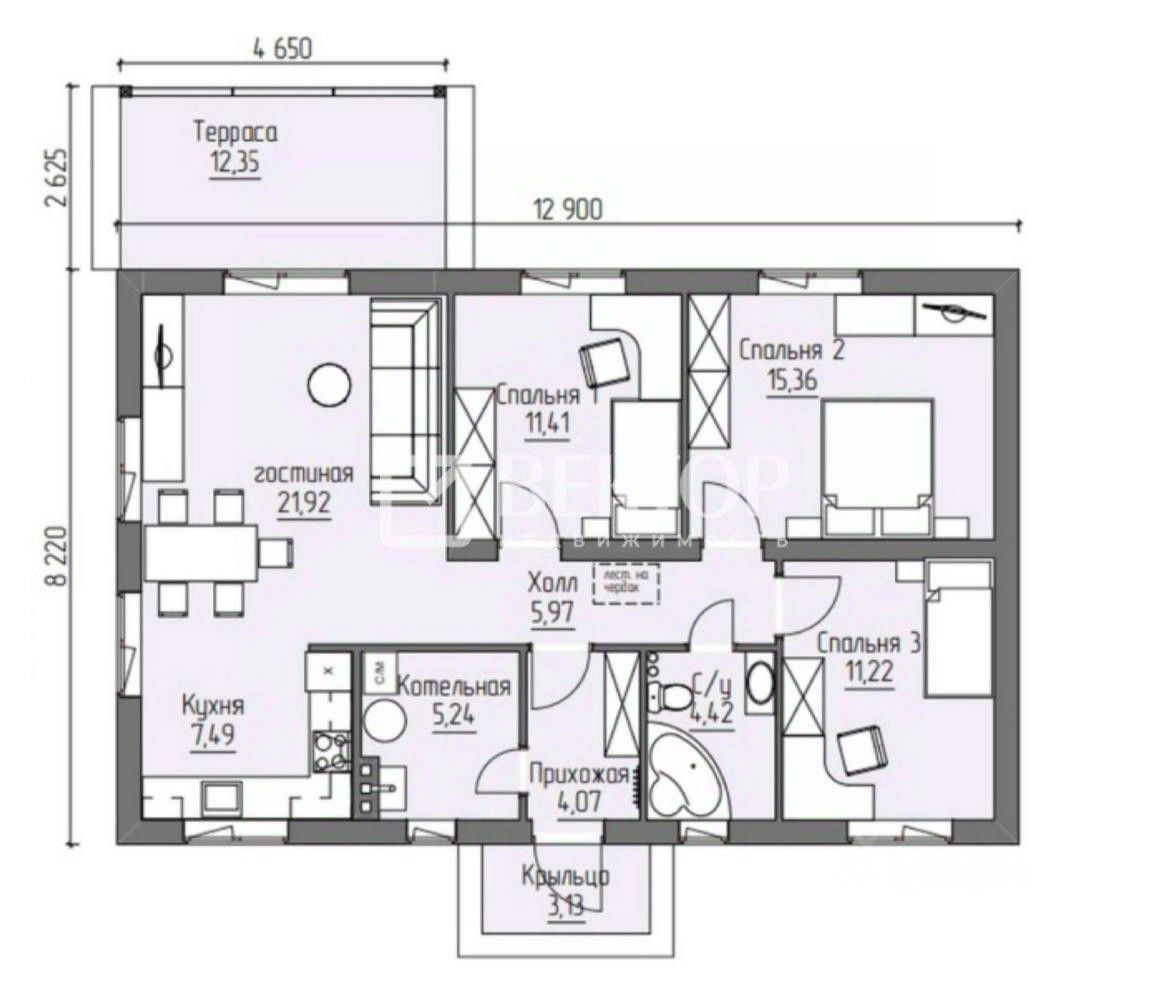 Тёплый пол по всей площади.