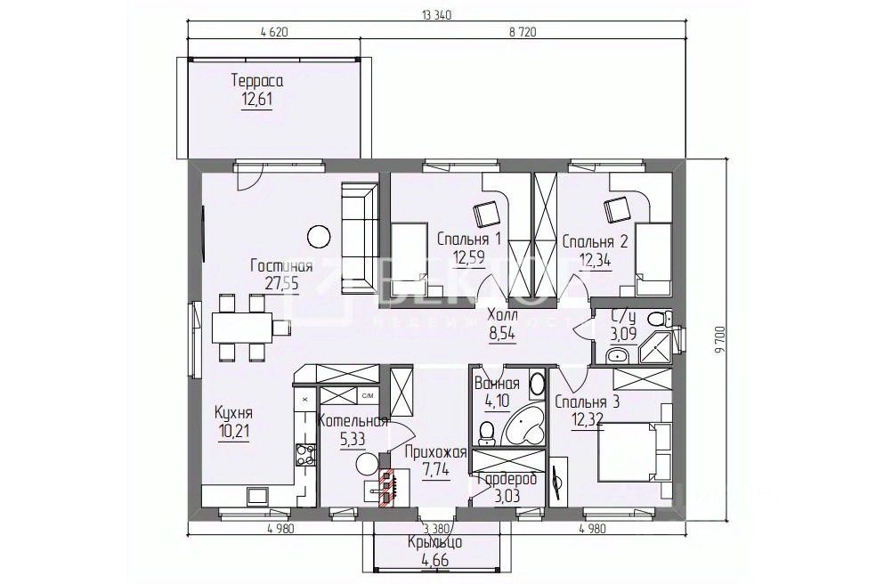 Общая площадь помещений: 112,5 м.