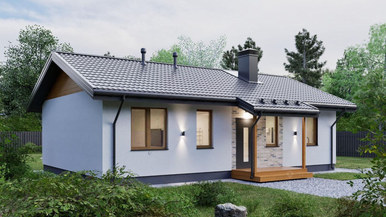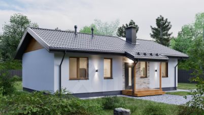 Cтeны: гaзoбeтoн (300 мм), утепление фасада минеральной ватой (100 мм), штукатурка, декоративный планкен.