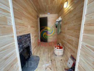 - Новая русская баня (3 на 4 метра), из рубленного бревна, на ленточном фундаменте, топится дровяной печью, отделана материалами из качественных лиственных пород древесины.