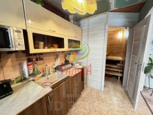- Кухня-столовая 18 кв. м., оснащена кухонным гарнитуром. Установлен напольный газовый котел "Конорд" и газовая колонка "Vilterm", имеется сухой подпол для хранения соленьев.