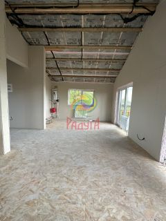 В доме выполнена предчистовая отделка ГКЛ, на полу ОСП, разводка электрики и сантехнических труб, установлены радиаторы, электрический котел отопления.