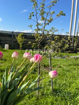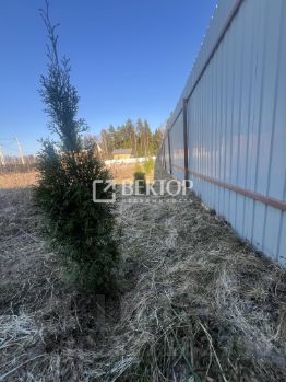 -На участке в метре от забора посажены яблони, сливы, груши, туи.