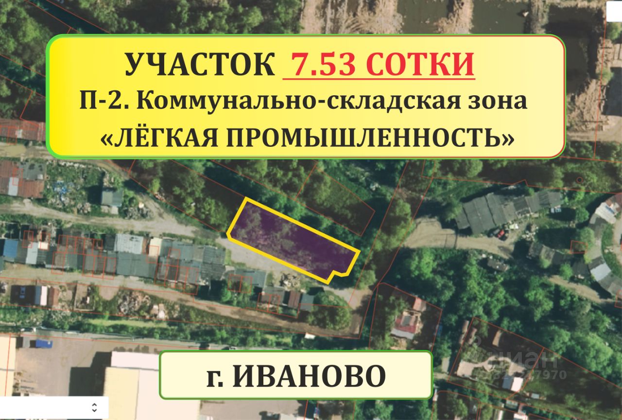Продаётся промышленный земельный участок в черте города Иваново 37:24:040932:8 площадью 7,53 сот Участок расчищен от растительности. Участок по текущим действующим правилам землепользования и застройки г.Иваново находится в территориальной зоне П-2. Текущий Вид разрешенного использования Легкая промышленность Госпошлина за наш счёт при условии оформления на физ.лицо или компенсации - 4000 р. при оформлении на юр. лицо Вышлю ссылку на аэросъемку по Вашему запросу. Стoимоcть зa сoтку: 298 804 р. Кадастровый номер: 37:24:040932:8 Адресная часть: Российская Федерация, Ивановская область, городской округ Иваново, город Иваново, территория СНТ Ветеран (ИЗТС), земельный участок 8 Участок отмежеван. Возможно подключение ГАЗА - точка подключения в 51 метре (см. фото) Возможно подключение электричества, электрические столбы проходят рядом с участком. Добавляйте объявление в избранное, чтобы не потерять. Пишите или звоните, если у Вас появились вопросы. Можем перевести в любой вид разрешенного использования, который требуется для Вашего бизнеса в течении 1-1.5 недель. Самые востребованные виды разрешенного использования в который можно перевести участок перед продажей : 1)Легкая промышленность( Швейный цех). 2) Склад 3) Автосервис 4) Бани(под официальную сдачу без претензий от соседей) 5) Магазин 6) Деловое управление Далее перечислены все виды разрешенного использования с кодами в который мы можем его перевести. 6.3 Легкая промышленность : Размещение объектов капитального строительства, предназначенных для производства продукции легкой промышленности (производство текстильных изделий, производство одежды, производство кожи и изделий из кожи и иной продукции легкой промышленности) 6.9 Склад : Размещение сооружений, имеющих назначение по временному хранению, распределению и перевалке грузов (за исключением хранения стратегических запасов), не являющихся частями производственных комплексов, на которых был создан груз: промышленные базы, склады, погрузочные терминалы и доки, нефтехранилища и нефтеналивные станции, газовые хранилища и обслуживающие их газоконденсатные и газоперекачивающие станции, элеваторы и продовольственные склады, за исключением железнодорожных перевалочных складов 6.9.1 Складские площадки : Временное хранение, распределение и перевалка грузов (за исключением хранения стратегических запасов) на открытом воздухе 4.9.1.4 Ремонт автомобилей : Размещение мастерских, предназначенных для ремонта и обслуживания автомобилей, и прочих объектов дорожного сервиса, а также размещение магазинов сопутствующей торговли 3.3 Бытовое обслуживание : Размещение объектов капитального строительства, предназначенных для оказания населению или организациям бытовых услуг (мастерские мелкого ремонта, ателье, бани, парикмахерские, прачечные, химчистки, похоронные бюро) 6.4 Пищевая промышленность