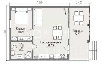 - Наружный габарит дома 9,64 х 6,64м. Высота помещений: 2,55м (с учетом конструкции полов).