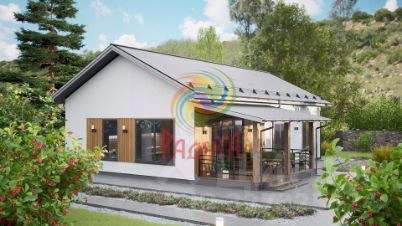 Покрытие кровли: металлическая черепица 0,5 мм, двускатная кровля, водосточная система, вентиляционные выходы, аэраторы и снегозадержатели.